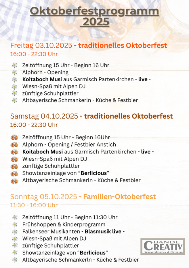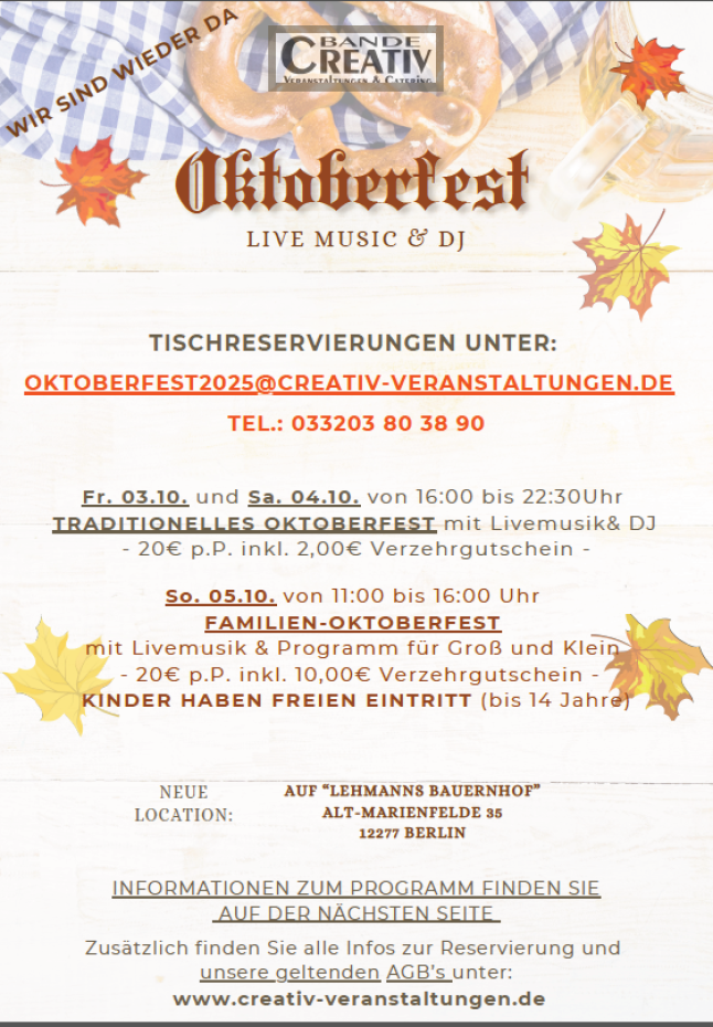 Reservierungen möglich unter: oktoberfest2025@creativ-veranstaltungen.de